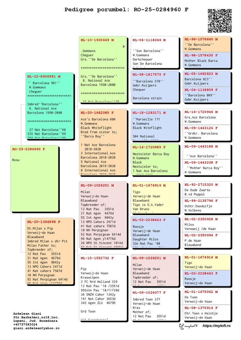 În prezent, domnul Ardelean scoate la vânzare un grup de 12 porumbei cu origini de elită, destinați să ducă mai departe tradiția succesului. Rezultatele obținute de crescători care au introdus acești porumbei în loturile lor confirmă valoarea lor genetică: