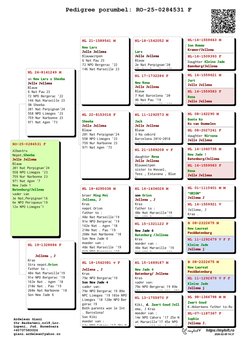 În prezent, domnul Ardelean scoate la vânzare un grup de 12 porumbei cu origini de elită, destinați să ducă mai departe tradiția succesului. Rezultatele obținute de crescători care au introdus acești porumbei în loturile lor confirmă valoarea lor genetică: