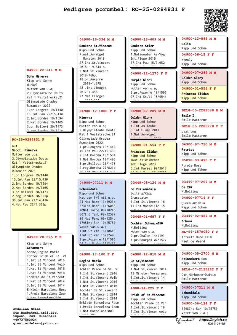 În prezent, domnul Ardelean scoate la vânzare un grup de 12 porumbei cu origini de elită, destinați să ducă mai departe tradiția succesului. Rezultatele obținute de crescători care au introdus acești porumbei în loturile lor confirmă valoarea lor genetică: