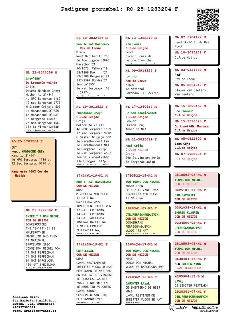 În prezent, domnul Ardelean scoate la vânzare un grup de 12 porumbei cu origini de elită, destinați să ducă mai departe tradiția succesului. Rezultatele obținute de crescători care au introdus acești porumbei în loturile lor confirmă valoarea lor genetică: