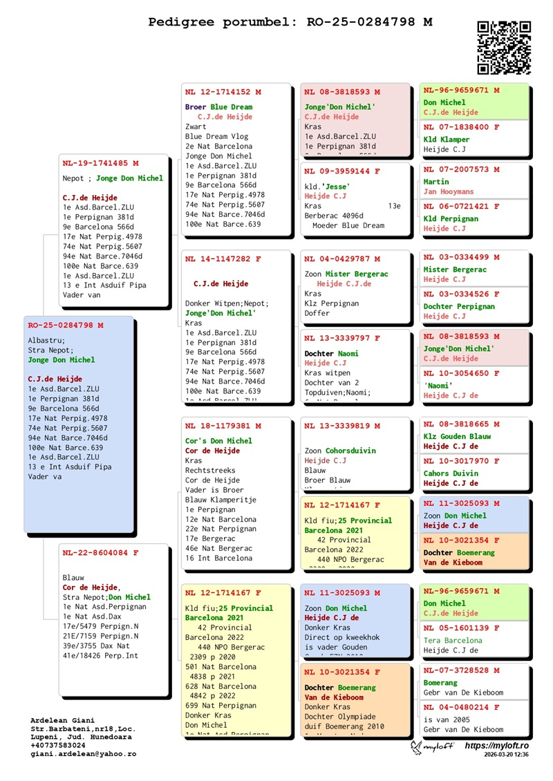 În prezent, domnul Ardelean scoate la vânzare un grup de 12 porumbei cu origini de elită, destinați să ducă mai departe tradiția succesului. Rezultatele obținute de crescători care au introdus acești porumbei în loturile lor confirmă valoarea lor genetică: