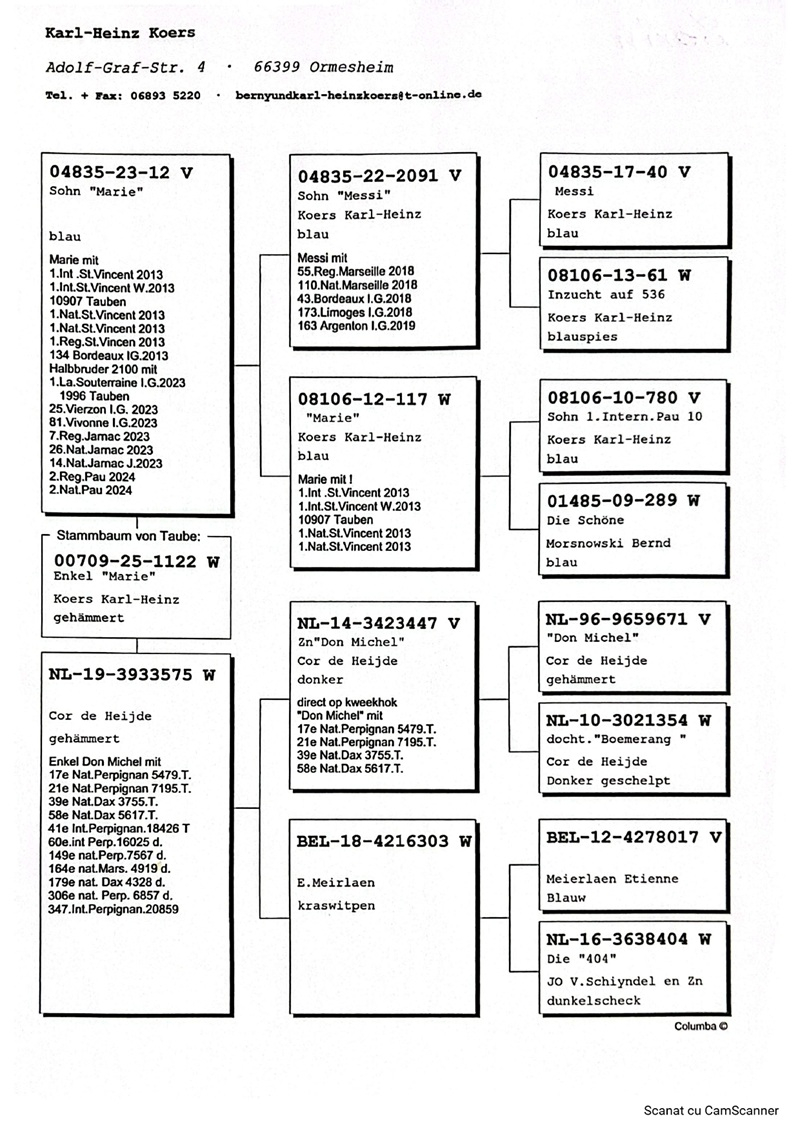 Acest palmares excepțional reflectă nu doar valoarea genetică deosebită a porumbeilor din crescătorie, ci și competența, perseverența și pasiunea autentică a lui Koers Karl-Heinz — un nume care a devenit sinonim cu excelența în columbofilia europeană.