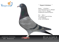 În decursul unui deceniu, Cristian Lemnaru din Slatina, județul Olt, a reușit să devină unul dintre cei mai reputați columbofili din sudul României și chiar la nivel național. Multiplu campion național la categoriile de zboruri de o zi, Cristian Lemnaru a obținut, de asemenea, un rezultat remarcabil, clasându-se pe locul întâi la Cupa Europei din 2013, la categoria Demifond. Un astfel de palmares este dificil de realizat și nu poate fi atins decât de un columbofil extrem de talentat, sprijinit de porumbei pe măsură — calități pe care Cristian Lemnaru le deține din plin. Recent, acesta și-a extins interesul și către etapele de maraton, astfel încât așteptăm cu interes să îi urmărim evoluția și în aceste categorii. Până atunci, vă invităm să descoperiți mai multe despre parcursul său în interviul de mai jos.