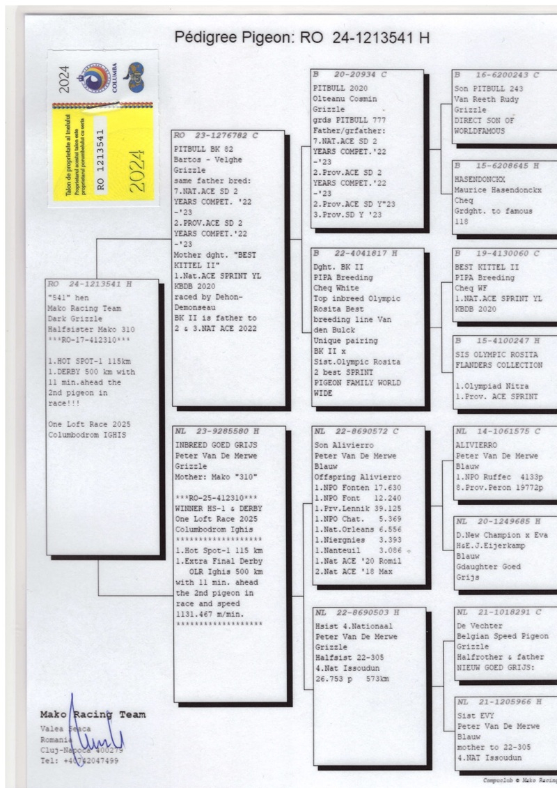 • Locul 1 la Hot Spot 115 km și locul 1 la Derby Extra Finala 500 km, cu același porumbel;