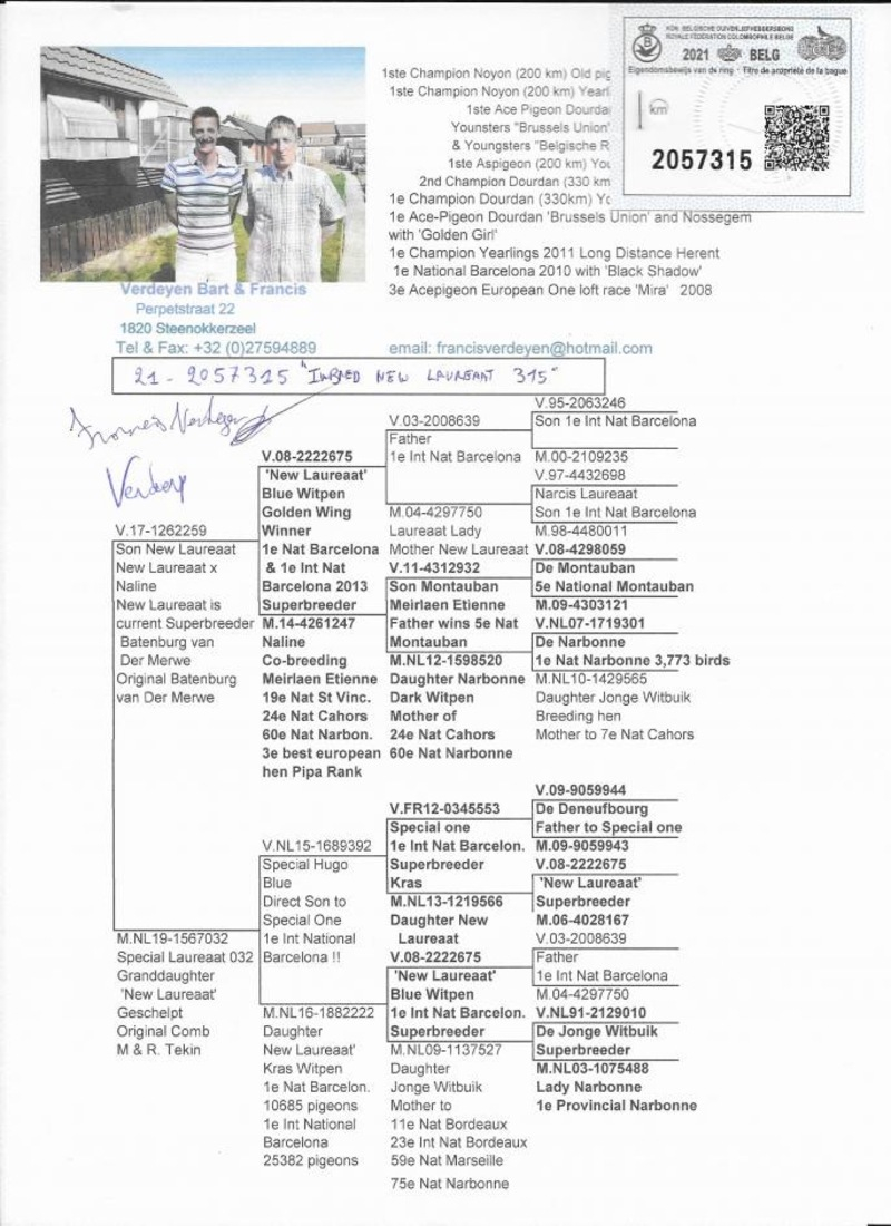 Valoarea porumbeilor 100% Marin Ionuț Cosmin a fost demonstrată și pe plan internațional. În Anglia, sub îndrumarea columbofilului Cristi Dumitru, aceștia au obținut clasări de prestigiu la competiții de top: