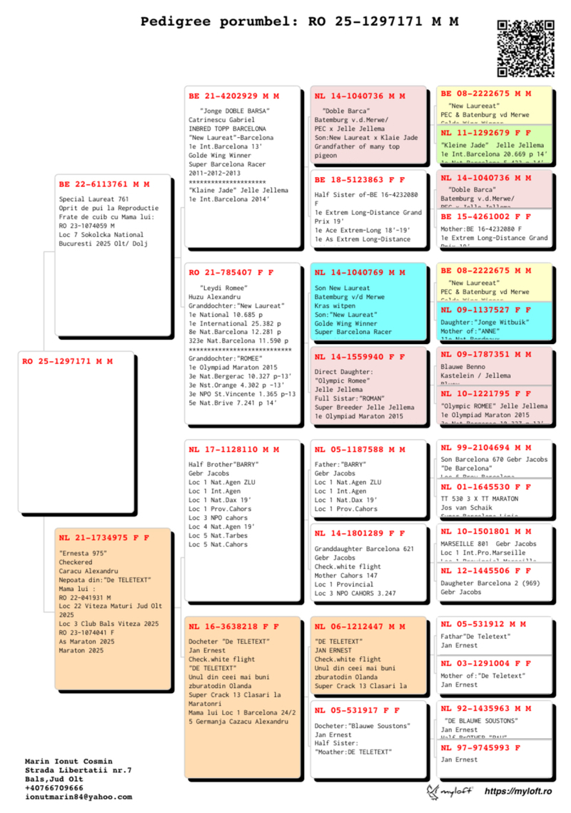 Aceste rezultate reflectă nu doar calitatea genetică a porumbeilor, ci și efortul constant, pasiunea și perseverența unui crescător care a știut să construiască, pas cu pas, o bază solidă pentru performanță. Prin munca sa susținută, Marin Ionuț Cosmin și-a câștigat un loc respectat în lumea columbofiliei, fiind apreciat pentru seriozitate, selecție riguroasă și devotament față de acest sport nobil.