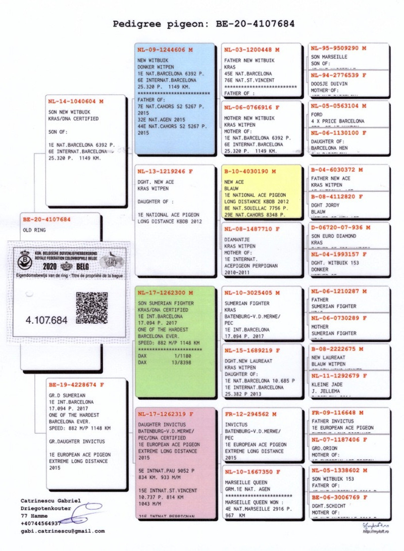 Valoarea porumbeilor 100% Marin Ionuț Cosmin a fost demonstrată și pe plan internațional. În Anglia, sub îndrumarea columbofilului Cristi Dumitru, aceștia au obținut clasări de prestigiu la competiții de top: