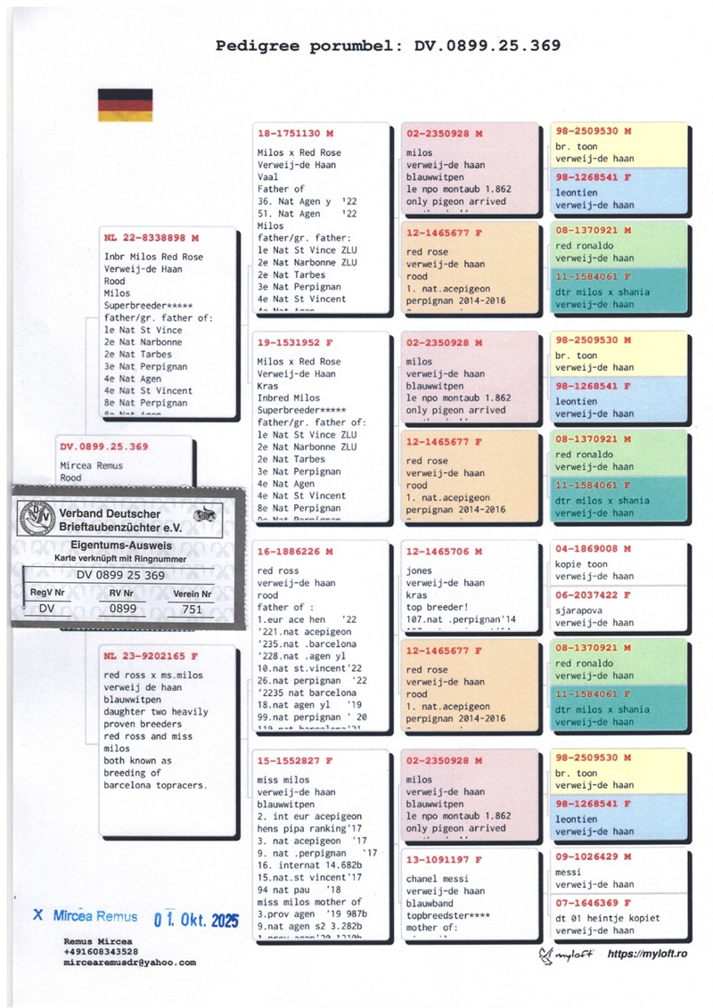 Născut în România și format columbofilic în mediul competitiv german, Mircea Remus a înțeles de la început că performanța durabilă în acest sport nu se bazează pe noroc, ci pe investiții inteligente și consecvență strategică. El a intuit corect că valoarea genetică a porumbeilor reprezintă fundamentul oricărui rezultat de top și, în consecință, a ales să investească în exemplare de elită, achiziționate de la crescători cu renume internațional.