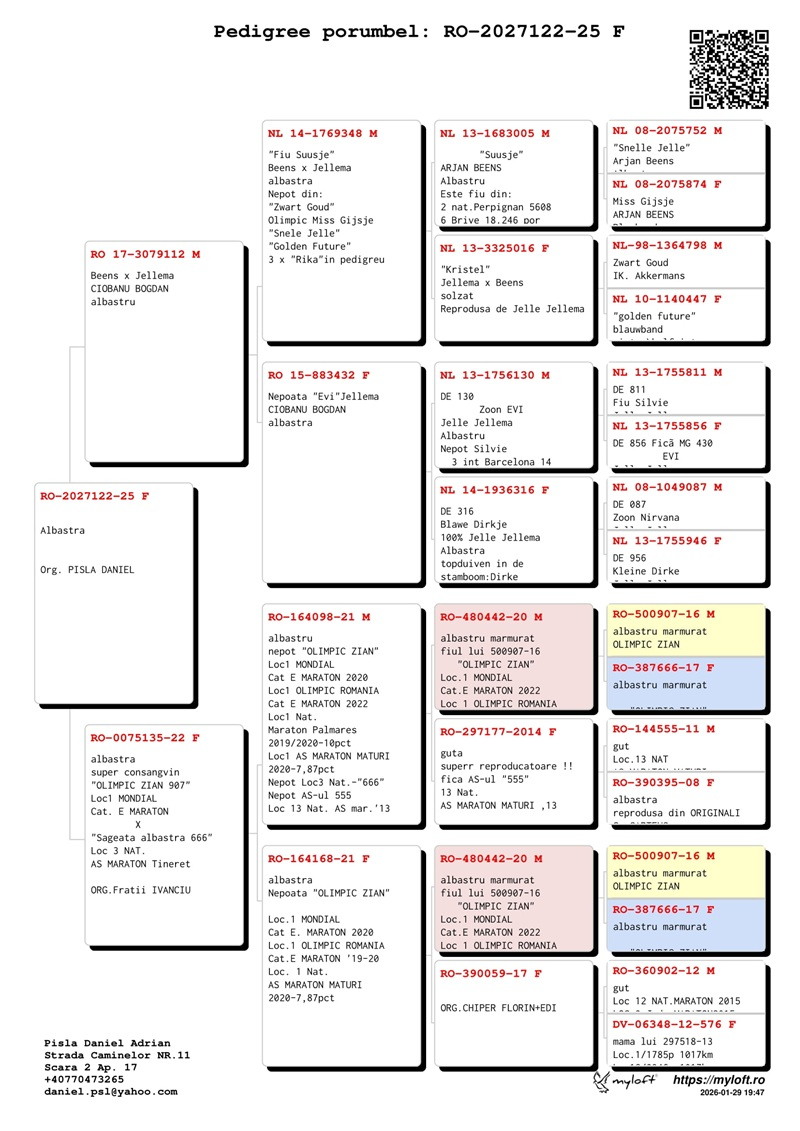 Cu un palmares impresionant, care cuprinde zeci de trofee naționale și două participări notabile la olimpiadele columbofile, activitatea sa a atins apogeul în anul 2017. În acel an, porumbelul 0098851-14 a stabilit un record excepțional, cucerind nu mai puțin de cinci cupe naționale, dintre care trei cu titlul de campion absolut — o performanță care i-a consolidat reputația la nivel național și internațional.
