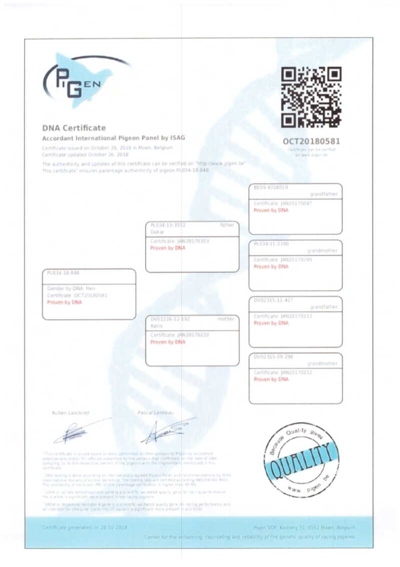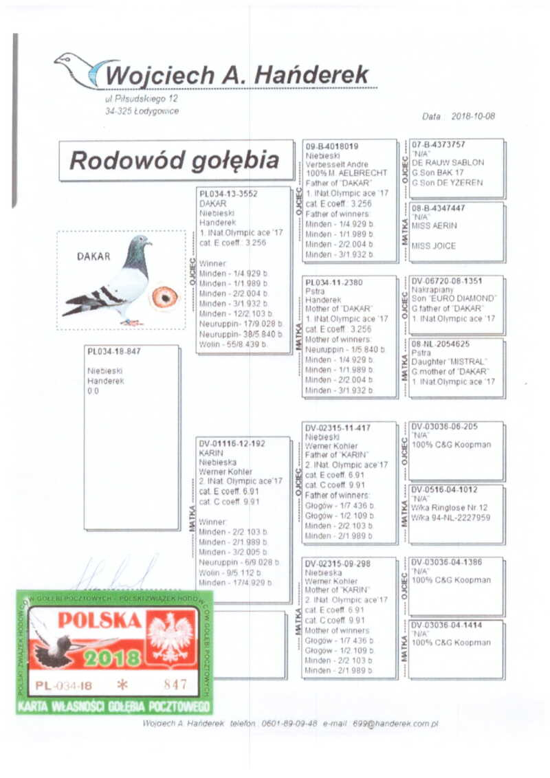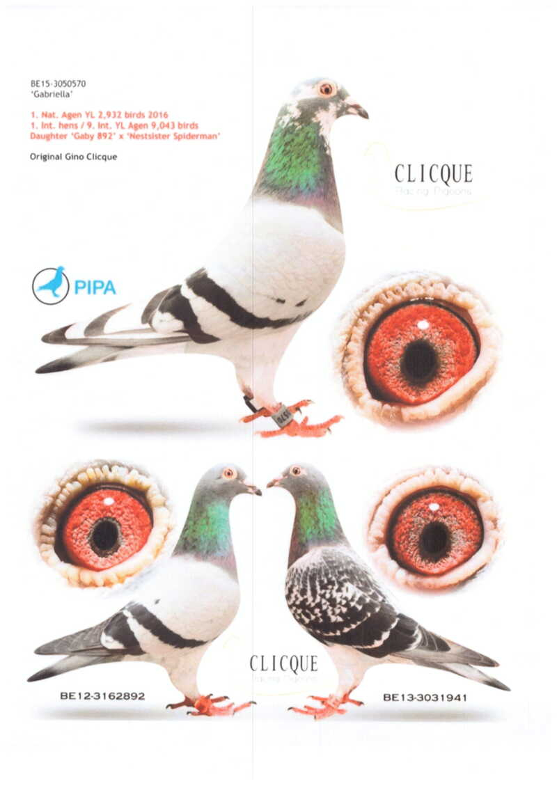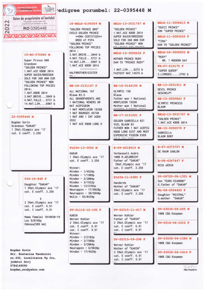 În volierele sale se regăsesc porumbei proveniți din linii de elită, achiziționați de la crescători consacrați din România și din străinătate, atât din cadrul Uniunii Columbofile Profesioniste din România (UCPR), cât și al Federației Naționale a Columbofililor din România (FNCPR). Materialul genetic valoros provine de la nume de prestigiu precum Cristea Sorin, Deftu Robert, Cazacu Alexandru, Botnar Ștefan, Vochin George, Tănase Ionuț, Vartolomei Florin, Melinche Iulian, Chelaru Cristinel, Bogdan Sorin, Fr. Ungureanu, Moldovan Teofil Ioan, Cătălin Antofie, Postelnicu Mihai, precum și de la crescători internaționali de renume, între care se remarcă Familia Bodor din România, laureată a olimpiadelor columbofile.