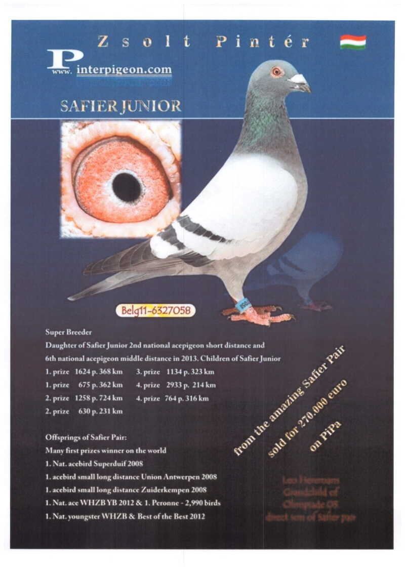 În volierele sale se regăsesc porumbei proveniți din linii de elită, achiziționați de la crescători consacrați din România și din străinătate, atât din cadrul Uniunii Columbofile Profesioniste din România (UCPR), cât și al Federației Naționale a Columbofililor din România (FNCPR). Materialul genetic valoros provine de la nume de prestigiu precum Cristea Sorin, Deftu Robert, Cazacu Alexandru, Botnar Ștefan, Vochin George, Tănase Ionuț, Vartolomei Florin, Melinche Iulian, Chelaru Cristinel, Bogdan Sorin, Fr. Ungureanu, Moldovan Teofil Ioan, Cătălin Antofie, Postelnicu Mihai, precum și de la crescători internaționali de renume, între care se remarcă Familia Bodor din România, laureată a olimpiadelor columbofile.