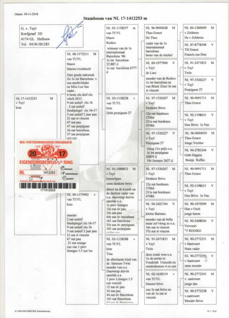 Acești porumbei descind din linii consacrate – Van der Wegen, De Heijde, Hagens și Belleter – linii formate din păsări cu performanțe dovedite, atent selecționate, testate în zbor și pregătite pentru maratoanele de elită ale sezoanelor viitoare (Bordeaux 2025Barcelona 2026).