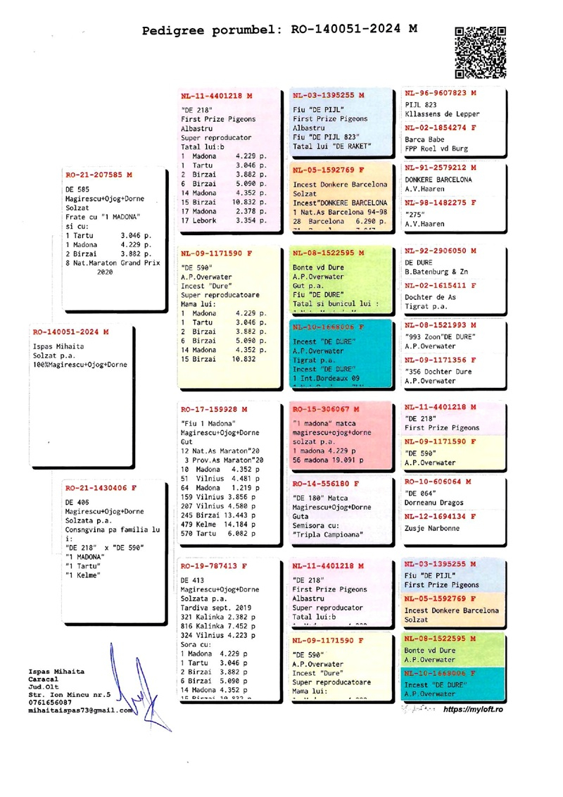 Fiecare porumbel prezentat este rezultatul unei selecții exigente și al unei munci constante, bazate pe perseverență, disciplină și o viziune clară asupra performanței sportive. Exemplarele provin din linii de elită, recunoscute pentru rezistență, orientare precisă și constanță la distanțe mari, trăsături care definesc veritabilii competitori ai marilor curse.