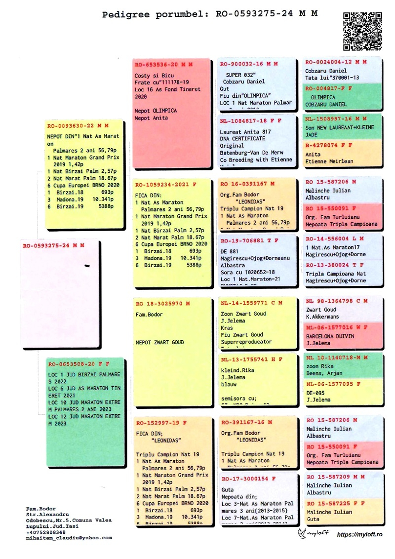 Fiecare porumbel prezentat este rezultatul unei selecții exigente și al unei munci constante, bazate pe perseverență, disciplină și o viziune clară asupra performanței sportive. Exemplarele provin din linii de elită, recunoscute pentru rezistență, orientare precisă și constanță la distanțe mari, trăsături care definesc veritabilii competitori ai marilor curse.