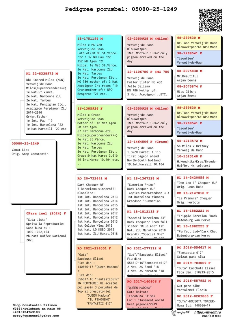 Debutul competițional a avut loc în 2023, la categoria Pui, etapă folosită exclusiv pentru acomodare, evaluare și selecție. În 2024, rezultatele obținute la Maraton Național au confirmat valoarea lotului, într-un sezon solicitant ce a pus la încercare atât rezistența porumbeilor, cât și priceperea crescătorului.