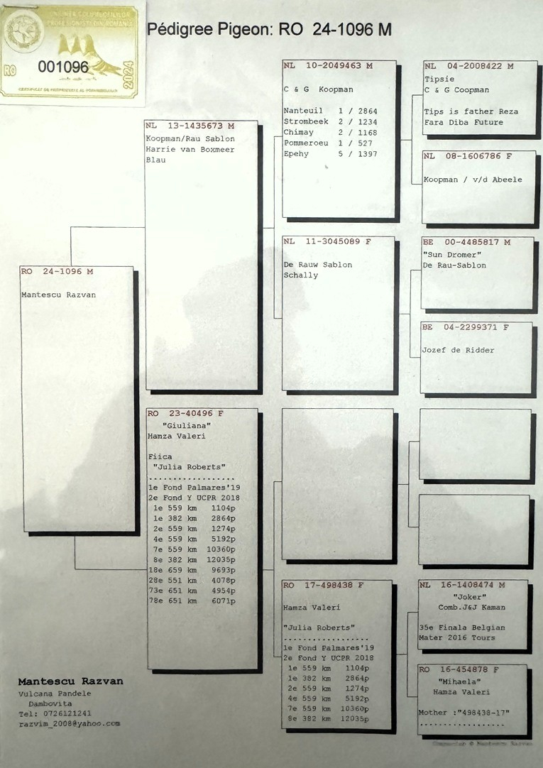• Transport pe teritoriul României: 75 RON (15 EUR) per porumbel.