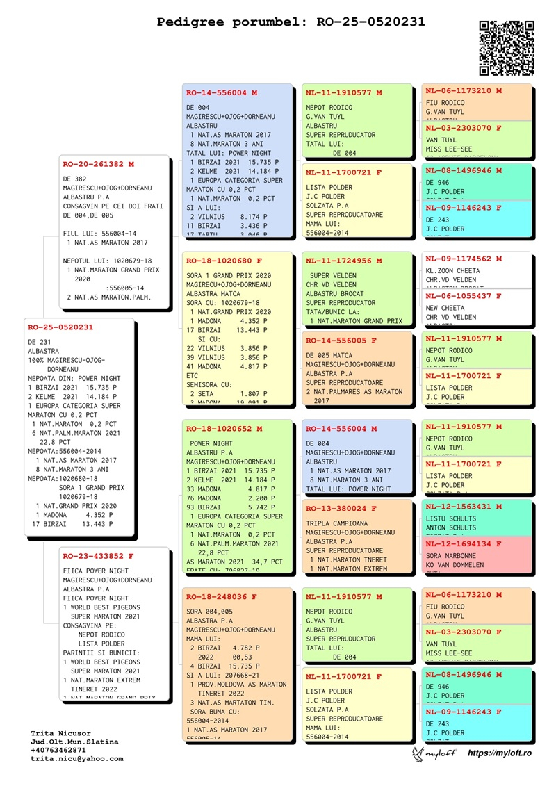 Domnul Trita Nicușor deține o colecție impresionantă de descendenți direcți ai acestor porumbei de elită, păsări care s-au distins prin performanțe de excepție în competițiile de maraton și care provin din linii genealogice de top, recunoscute la nivel național și internațional.