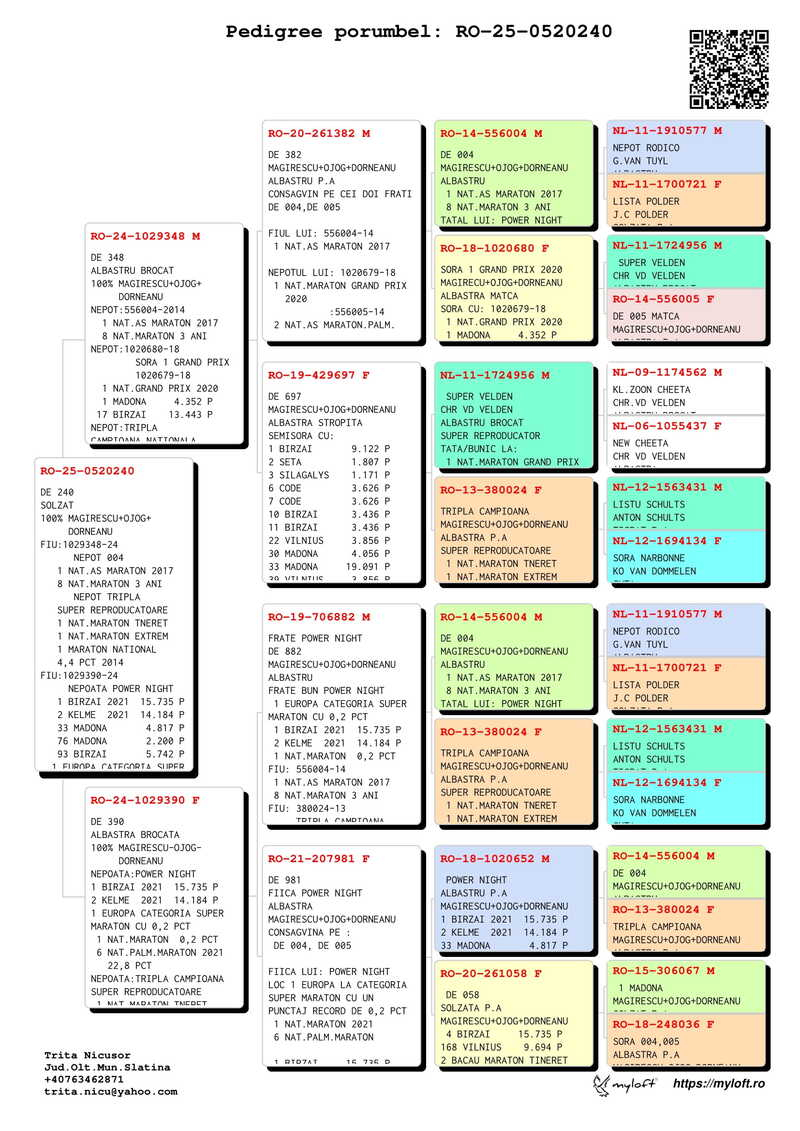 Domnul Trita Nicușor deține o colecție impresionantă de descendenți direcți ai acestor porumbei de elită, păsări care s-au distins prin performanțe de excepție în competițiile de maraton și care provin din linii genealogice de top, recunoscute la nivel național și internațional.