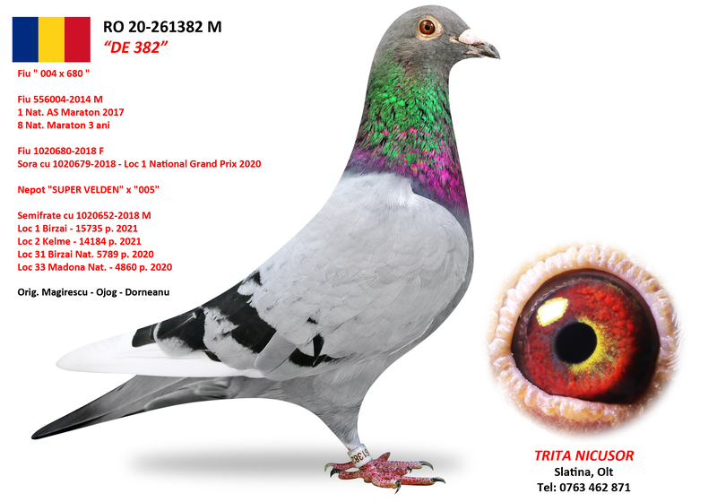Vă invităm să participați la o licitație remarcabilă de porumbei de înaltă clasă, organizată de domnul Trita Nicușor, reputat columbofil din Slatina, județul Olt. Evenimentul constituie o oportunitate unică pentru pasionații de columbofilie de a achiziționa exemplare valoroase, provenind din linii genetice consacrate, aparținând unora dintre cei mai titrați campioni și vicecampioni ai renumitei crescătorii Trioul Magirescu + Ojog + Dorneanu. Printre numele de referință se regăsesc porumbeii legendari POWER NIGHT, TRIPLA CAMPIOANĂ NAȚIONALĂ, DE 004, DE 005, SUPER VELDEN, FAVORITUL și mulți alții.
