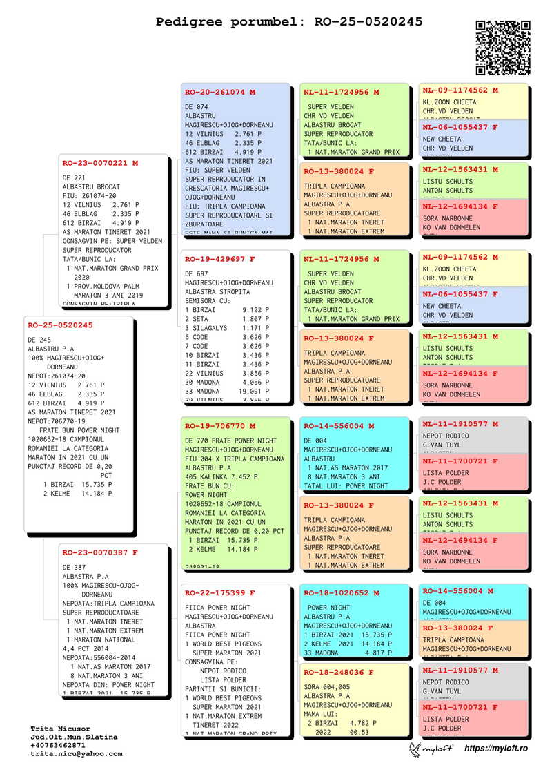 Domnul Trita Nicușor deține o colecție impresionantă de descendenți direcți ai acestor porumbei de elită, păsări care s-au distins prin performanțe de excepție în competițiile de maraton și care provin din linii genealogice de top, recunoscute la nivel național și internațional.