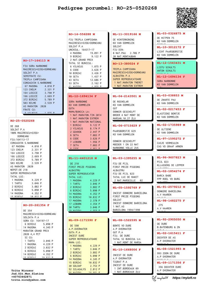 Domnul Trita Nicușor deține o colecție impresionantă de descendenți direcți ai acestor porumbei de elită, păsări care s-au distins prin performanțe de excepție în competițiile de maraton și care provin din linii genealogice de top, recunoscute la nivel național și internațional.