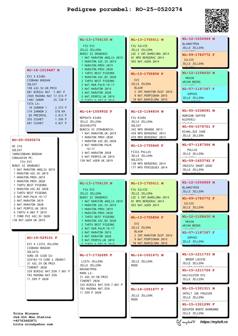 Domnul Trita Nicușor deține o colecție impresionantă de descendenți direcți ai acestor porumbei de elită, păsări care s-au distins prin performanțe de excepție în competițiile de maraton și care provin din linii genealogice de top, recunoscute la nivel național și internațional.