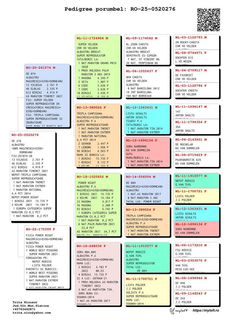 Domnul Trita Nicușor deține o colecție impresionantă de descendenți direcți ai acestor porumbei de elită, păsări care s-au distins prin performanțe de excepție în competițiile de maraton și care provin din linii genealogice de top, recunoscute la nivel național și internațional.