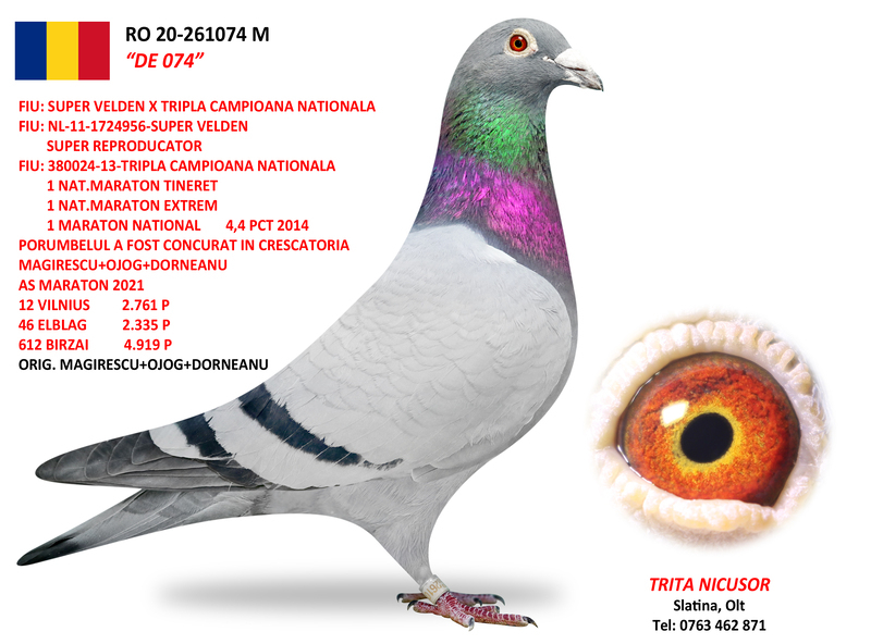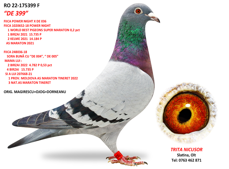 Vă invităm să participați la o licitație remarcabilă de porumbei de înaltă clasă, organizată de domnul Trita Nicușor, reputat columbofil din Slatina, județul Olt. Evenimentul constituie o oportunitate unică pentru pasionații de columbofilie de a achiziționa exemplare valoroase, provenind din linii genetice consacrate, aparținând unora dintre cei mai titrați campioni și vicecampioni ai renumitei crescătorii Trioul Magirescu + Ojog + Dorneanu. Printre numele de referință se regăsesc porumbeii legendari POWER NIGHT, TRIPLA CAMPIOANĂ NAȚIONALĂ, DE 004, DE 005, SUPER VELDEN, FAVORITUL și mulți alții.