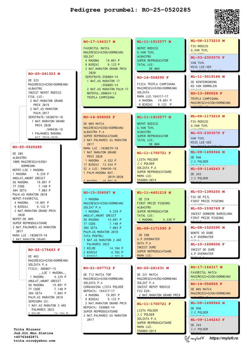 Domnul Trita Nicușor deține o colecție impresionantă de descendenți direcți ai acestor porumbei de elită, păsări care s-au distins prin performanțe de excepție în competițiile de maraton și care provin din linii genealogice de top, recunoscute la nivel național și internațional.