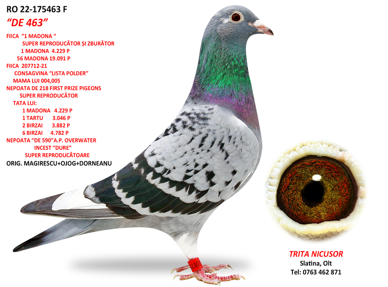 Vă invităm să participați la o licitație remarcabilă de porumbei de înaltă clasă, organizată de domnul Trita Nicușor, reputat columbofil din Slatina, județul Olt. Evenimentul constituie o oportunitate unică pentru pasionații de columbofilie de a achiziționa exemplare valoroase, provenind din linii genetice consacrate, aparținând unora dintre cei mai titrați campioni și vicecampioni ai renumitei crescătorii Trioul Magirescu + Ojog + Dorneanu. Printre numele de referință se regăsesc porumbeii legendari POWER NIGHT, TRIPLA CAMPIOANĂ NAȚIONALĂ, DE 004, DE 005, SUPER VELDEN, FAVORITUL și mulți alții.