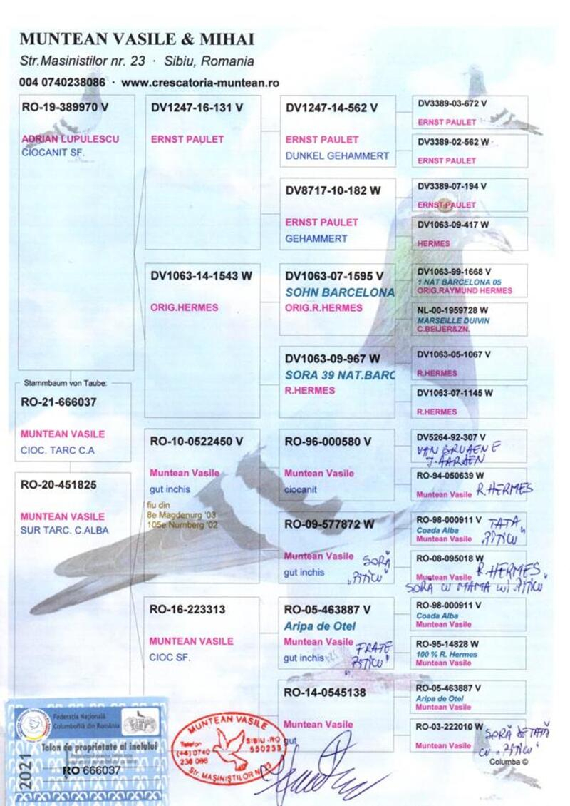 Având o abordare completă și reușind să concureze cu succes în cursele de la 100 la 1000 km, Vasile Muntean rămâne o figură de referință în istoria columbofiliei, datorită performanțelor sale remarcabile în cadrul celor mai importante concursuri de lungă distanță organizate în provincia Transilvania. Cei câțiva zeci de ani de experiență acumulată în columbofilie, împreună cu abilitățile sale de columbicultor și, în special, cu un bagaj genetic de excepție, au generat numeroase aprecieri pozitive din partea crescătorilor din întreaga țară și dincolo de granițele acesteia.