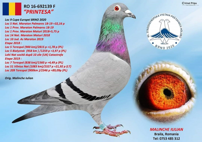 România este onorabil reprezentată de doi crescători de prestigiu, Mălinche Iulian și Roman Claudiu, ale căror rezultate confirmă excelența columbofiliei autohtone.