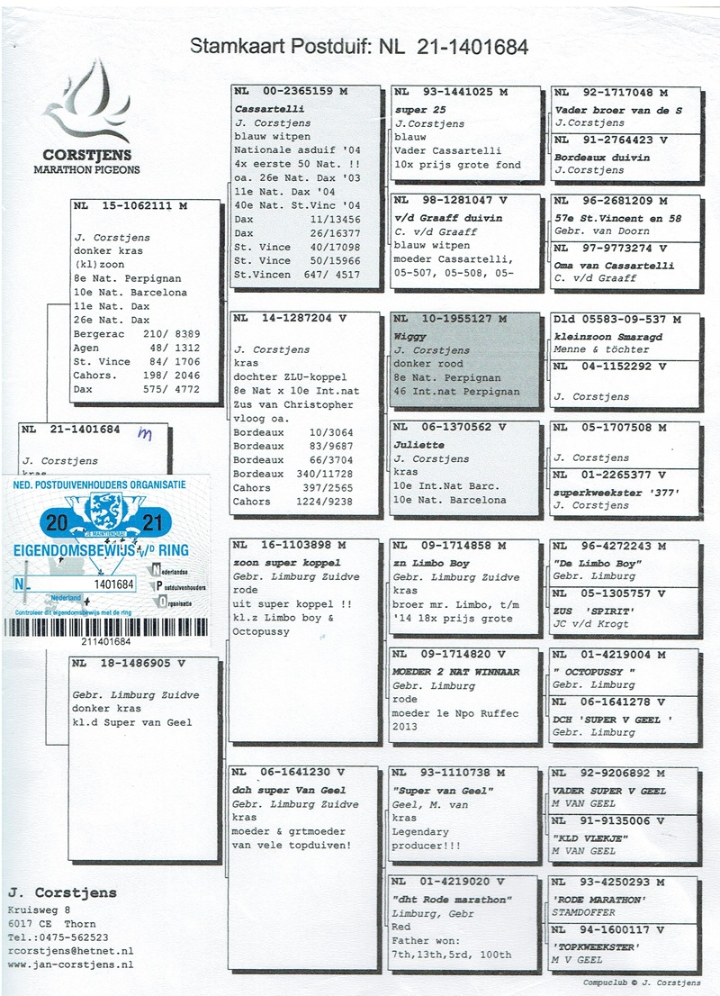 În columbofilia de maraton există crescătorii care nu impresionează prin volum, ci prin continuitate, durabilitate și rezultate obținute constant pe cele mai dure rute ale Europei. Piet Boyen & Fiica reprezintă exact această școală a excelenței: un efectiv restrâns, dar extrem de valoros, format prin selecție fără compromisuri și o viziune genetică clară, transmisă din generație în generație.